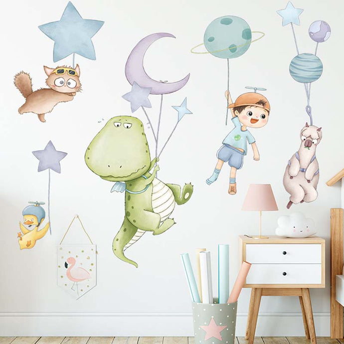 Wall Decals: Dino & Kid (180*50cm)